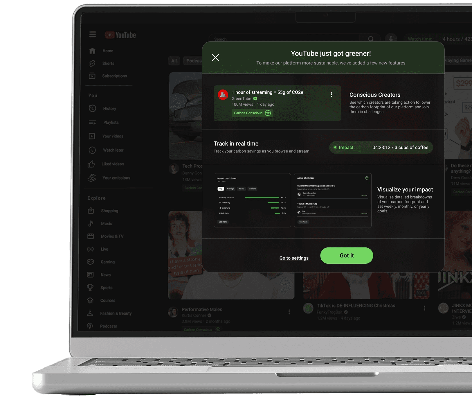 Impact overview, personal tips and insights, list creation and history.
