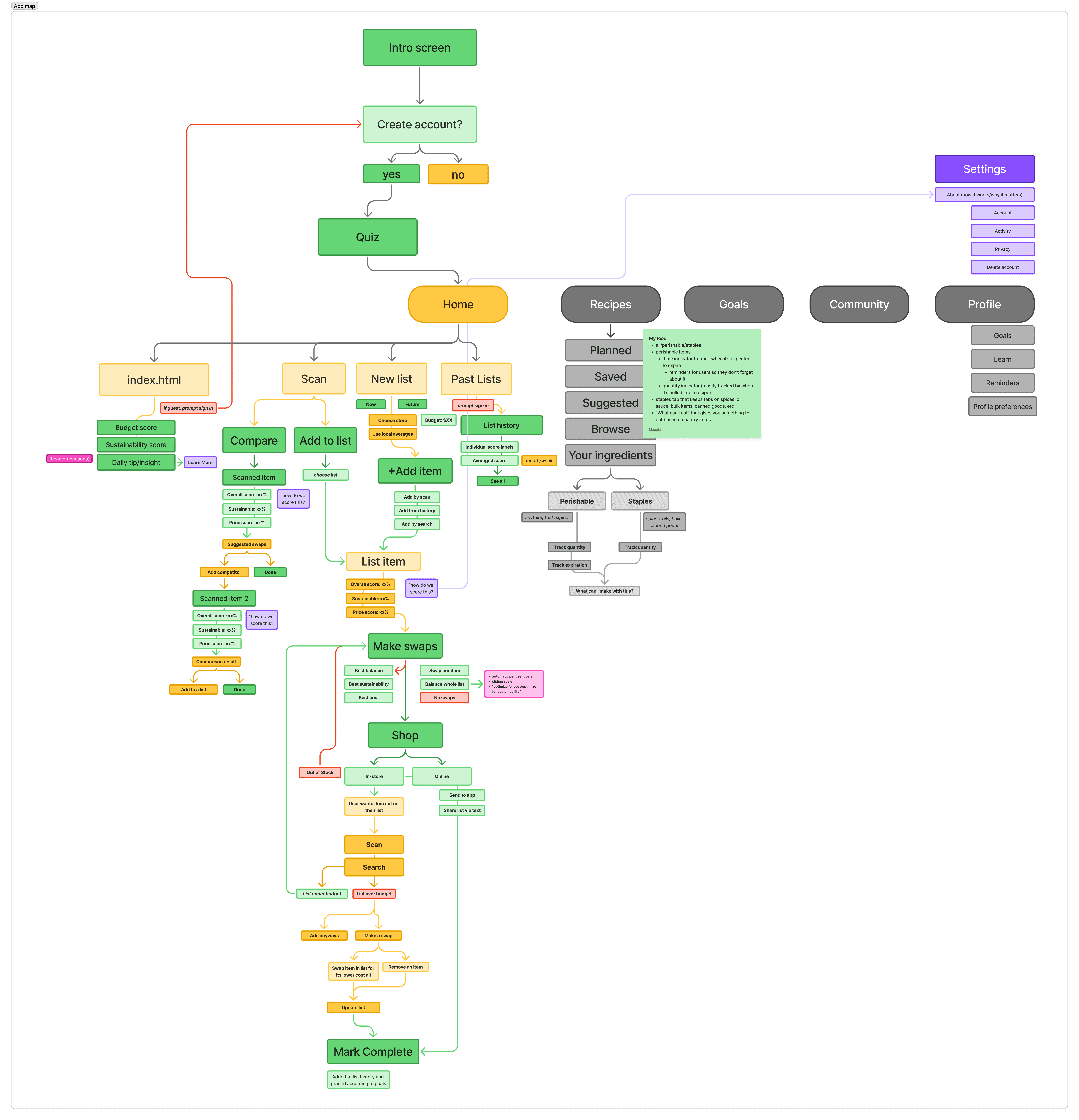 Users completed an onboarding quiz collecting dietary preferences, monthly budget, and sustainability goals. This powers the personalization engine and ensures every recommendation is grounded in the user's actual circumstances from the first session.